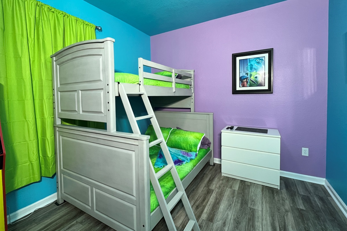 3 Bedrooms • 2 Bathrooms 2 Baths • Sleeps 7-8Our beautifully updated Monsters Inc inspired condo is located in the desirable gated community of Windsor Hills. Our community, popular for its relaxing pool, hot tub, splash pad and water park (all included in your stay at no additional charge), is also minutes from the gates of Walt Disney World and a short drive to the Universal theme parks.