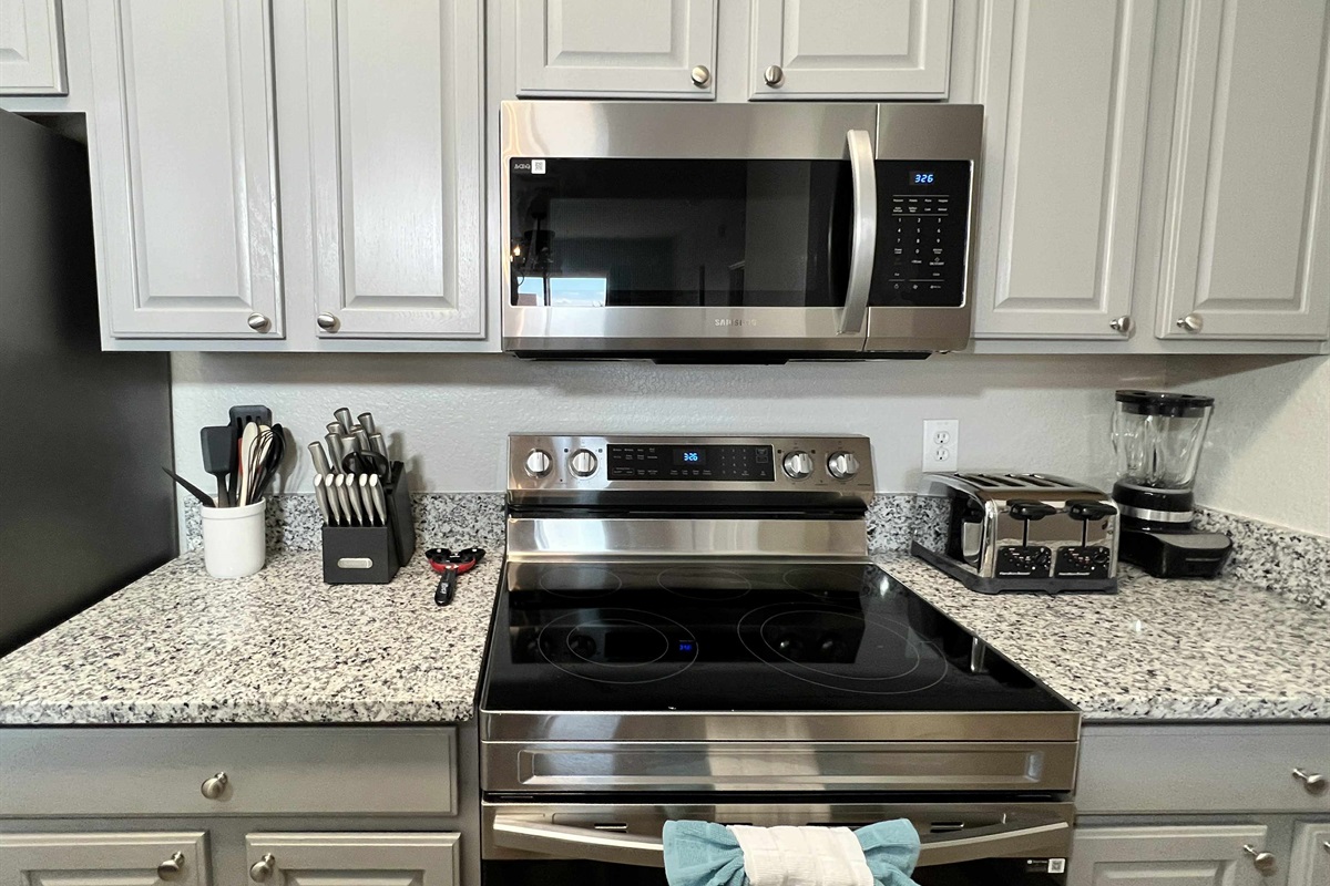 We provide soap, shampoo, conditioner, toilet tissue, and garbage bags to start your stay (but you'll need to bring or pick up extras for longer stays).